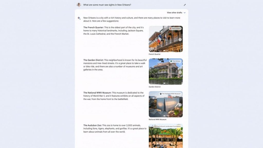 At a more basic level, results will be able to include images. If you’re asking for tourist spots, each suggestion will be accompanied by a photo.