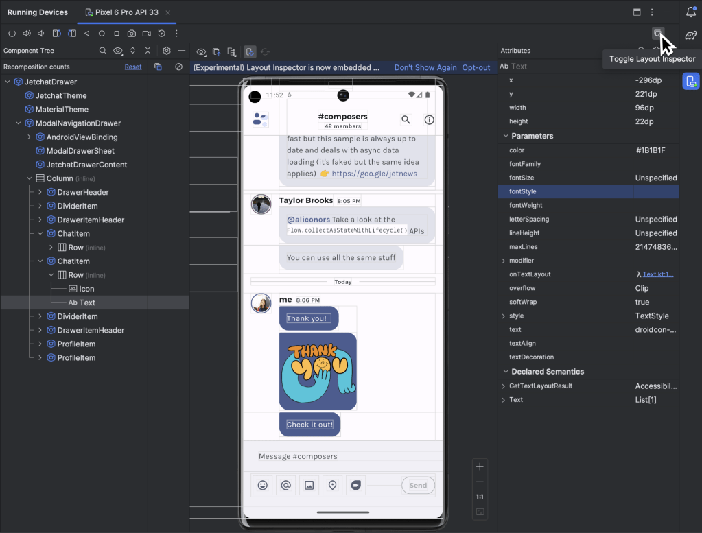 Relatedly, Android Studio’s “Layout Inspector” is getting an upgrade with Hedgehog, overlaying the information onto the video from your phone/tablet. This should improve the tool’s performance while also making it more directly actionable.
