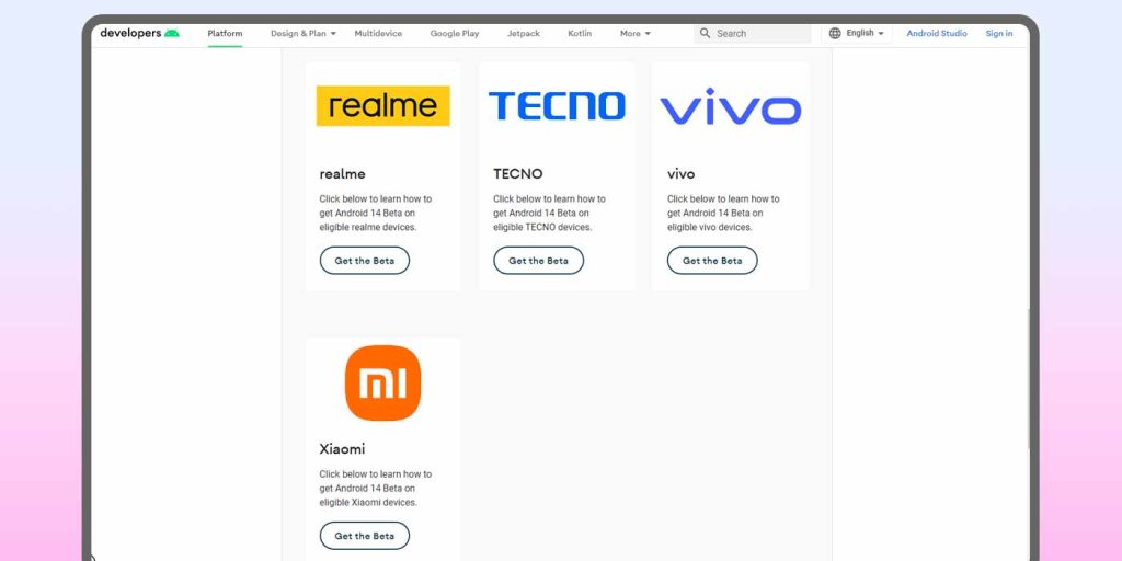 Those changes are now being made available for devices beyond Google’s own Pixel phones. Google’s Android 14 Beta devices site now showcases guides for several different phone manufacturers, all written by the OEMs themselves. With each guide written by the manufacturer of that device, the steps are catered directly to whatever that device requires.