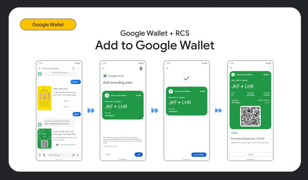 You’ll be able to add a boarding pass to Google Wallet from the Messages app when an airline sends an RCS chat. Google announced earlier that there are over 800 million people with Rich Communications Service and it’s expected to hit a 1 billion milestone later this year.