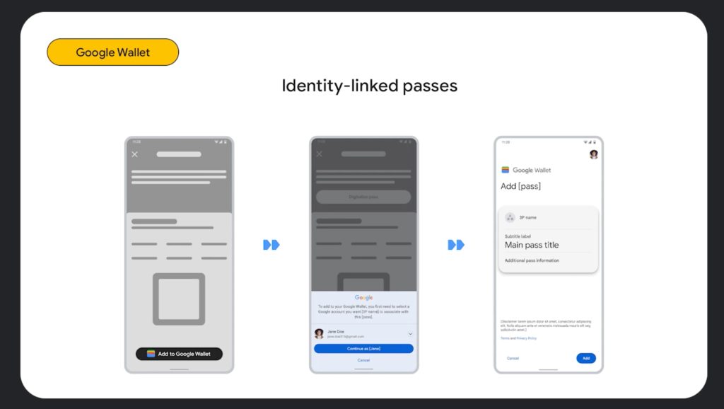 Identity-linked passes will let the issue specify an email address that has to match with the currently logged in Google Wallet account before it can be saved. This is to prevent theft, reselling, and transfers.