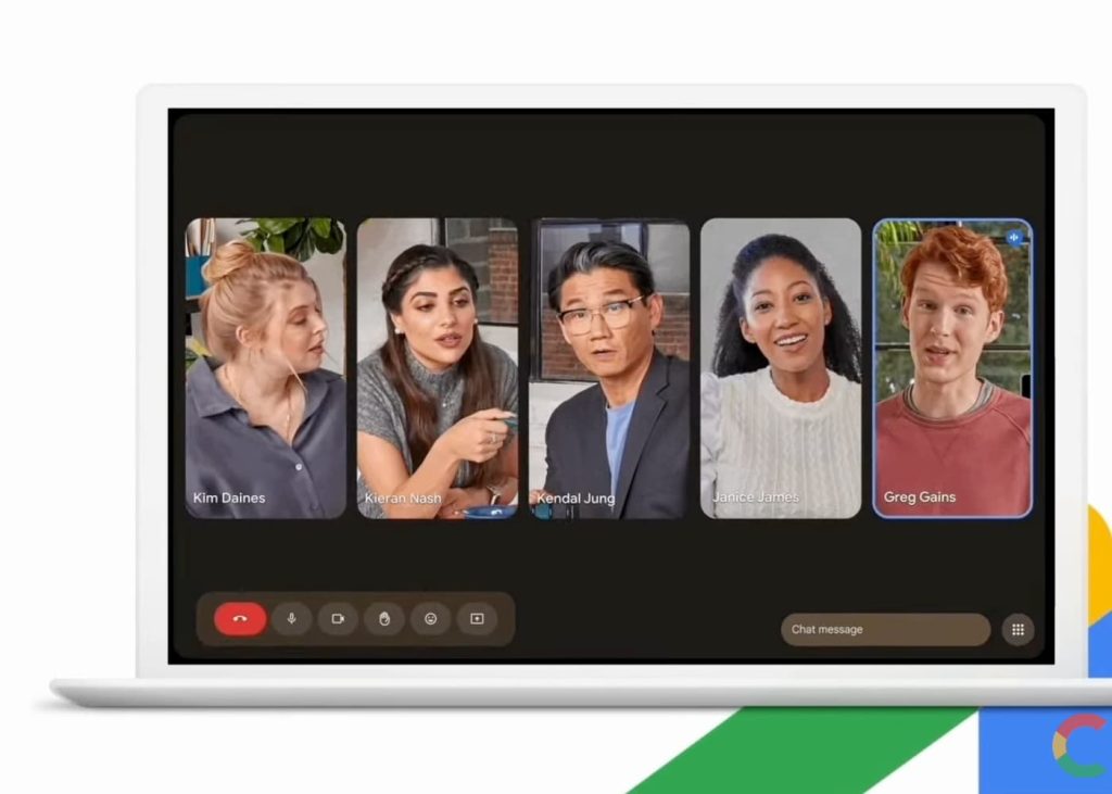 Instead of a landscape video window, Google might change it to a portrait feed so that you’ll see more people in a fuller manner per screen and less of the black background. As part of this, the toolbar of meeting controls might shift to allow the “Chat message” box to appear.