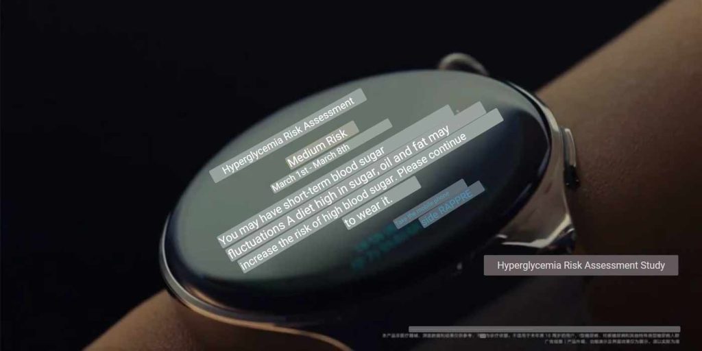 Promo images posted by the company show off the feature in use, with the Watch 4 displaying a notification reading – translated with Google Lens (via Artem Russakovskii) – “You may have short-term blood sugar fluctuations. A diet high in sugar, oil, and fat may increase the risk of high blood sugar. Please continue to wear it.”
