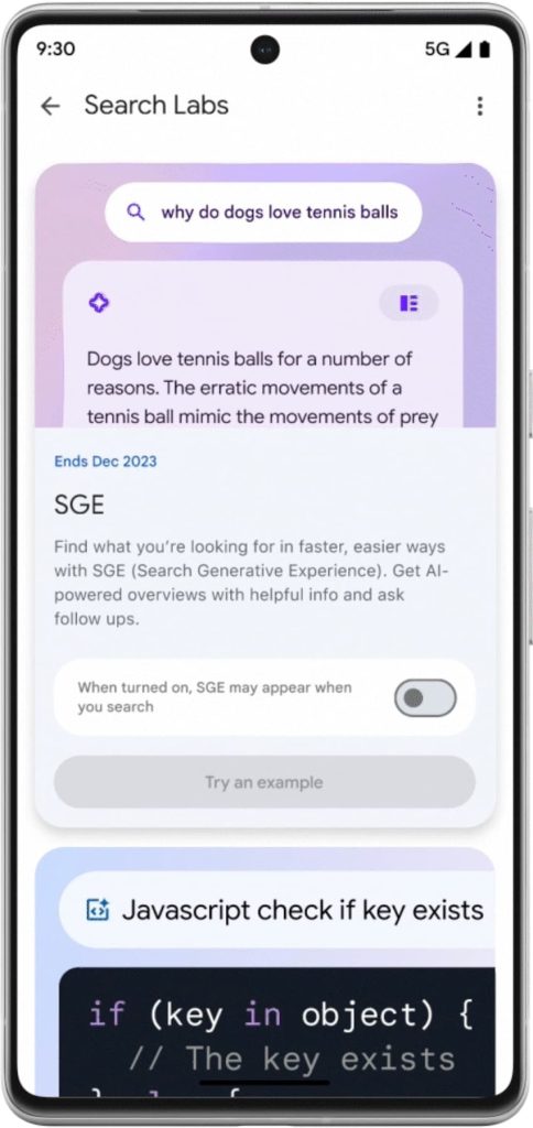 Announced at I/O 2023, Google is now rolling out the AI/LLM-powered Search Generative Experience (SGE) to users that signed up for the Search Labs program.