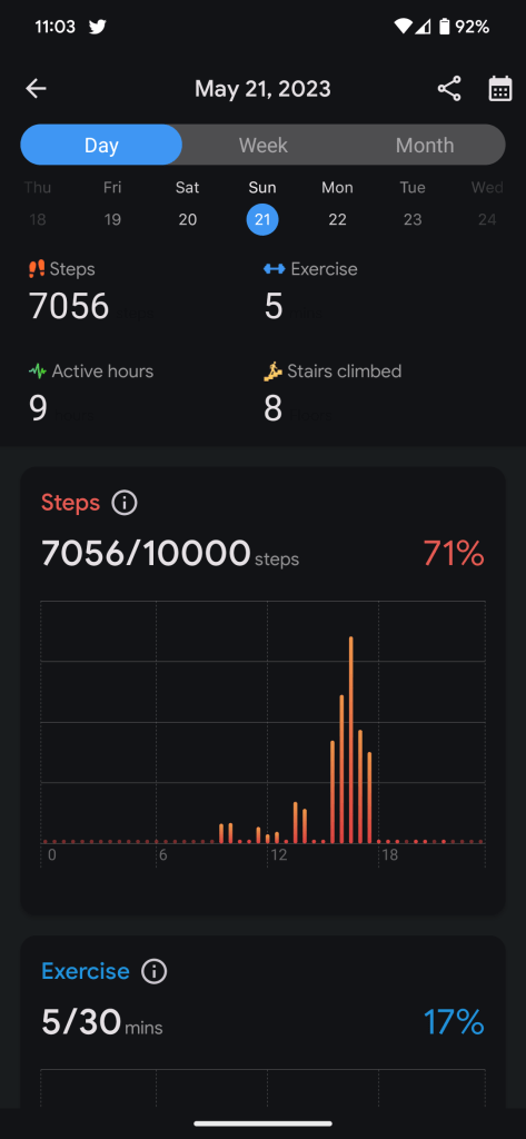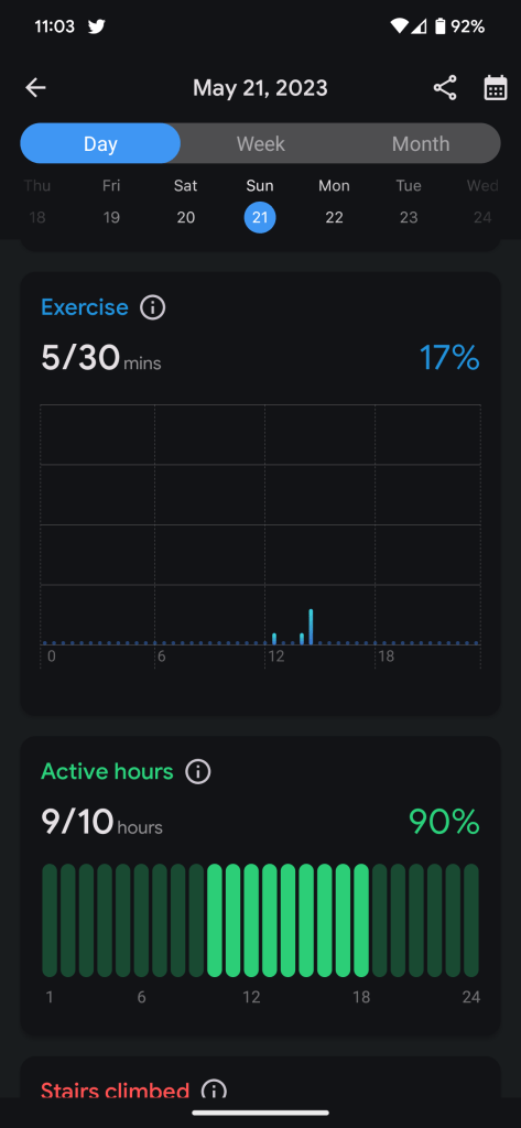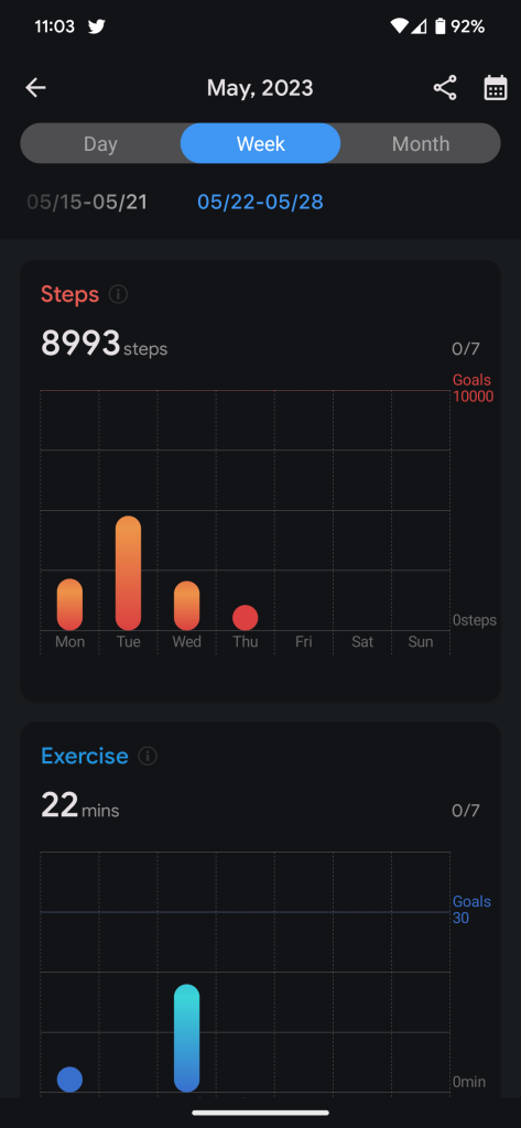 The TicHealth suite works quite well. The exercise app can track a huge variety of workouts, and the aforementioned integration with the secondary display is really unique and useful. Health tracking overall was solid but reinforced the point that you shouldn’t rely on raw data captured by devices like this. Step counts on the TicWatch Pro 5 were lower by 30-40% versus a Fitbit Charge 5 on my other wrist, though the heart rate sensor was within 5 bpm on average. This reinforces that this sort of data should only be used to find trends, but I’ve got to say, the undercutting of data compared to my Fitbit only left me discouraged with my activity levels – like my efforts were in vain. It seems that Mobvoi’s suite is more geared towards more serious workout regimens, rather than more casual activity such as aerobics and walking.