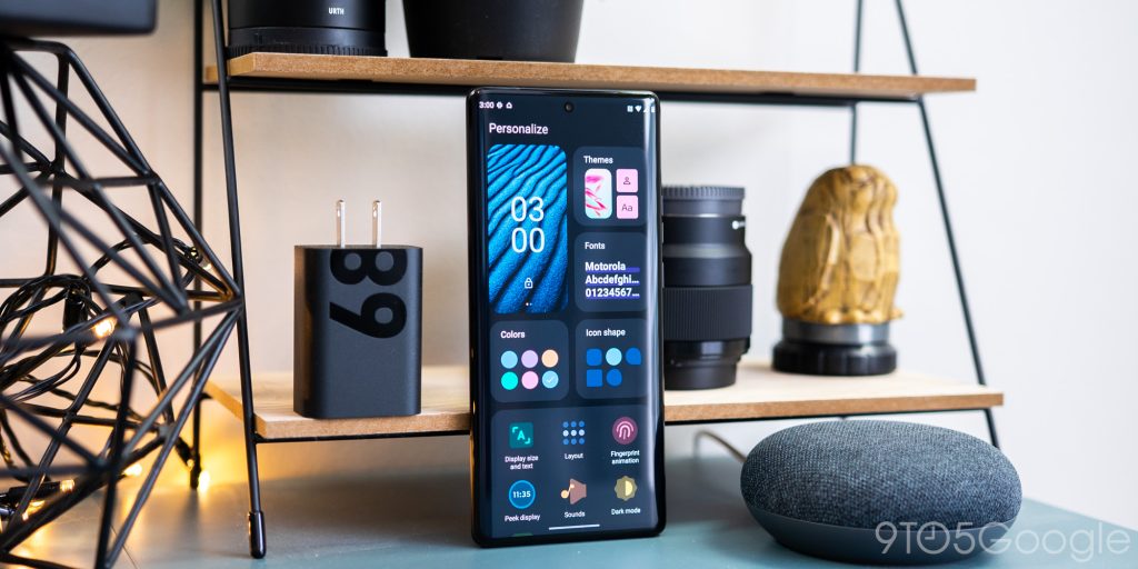 The only real difference lies in the “Personalize” page and lock screen overlay, which Motorola calls the “Peak Display.” The personalize page is Moto’s version of the “Wallpaper & style” tool on Android and features unique tools like additional icon shapes, fingerprint animations, and edge light customization. The latter changes the color of the notification light that appears on the outer curves of the Edge+.