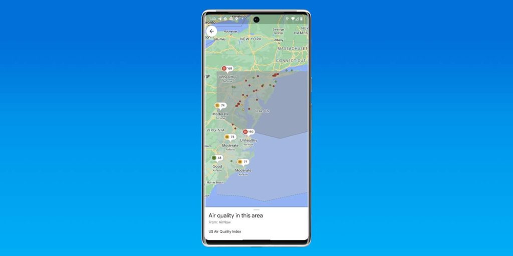 Google Maps introduced a new tool last year that allows users to see an air quality layer in the app. That feature should be available for all and is very easy to access. It comes in handy for those needing to see the extent of a certain event, like a wildfire.