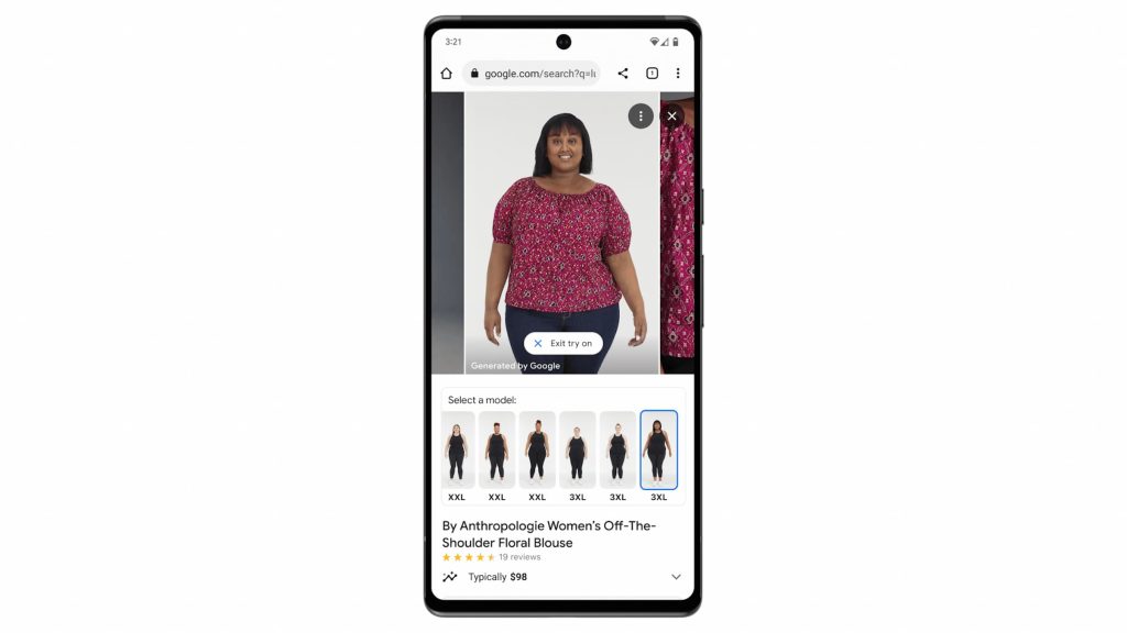 This is starting in the US for women’s tops from brands like Anthropologie, Everlane, H&M, and Loft. Look for the “Try On” badge and then select a “model that resonates most with you,” with support for men’s tops coming later this year.