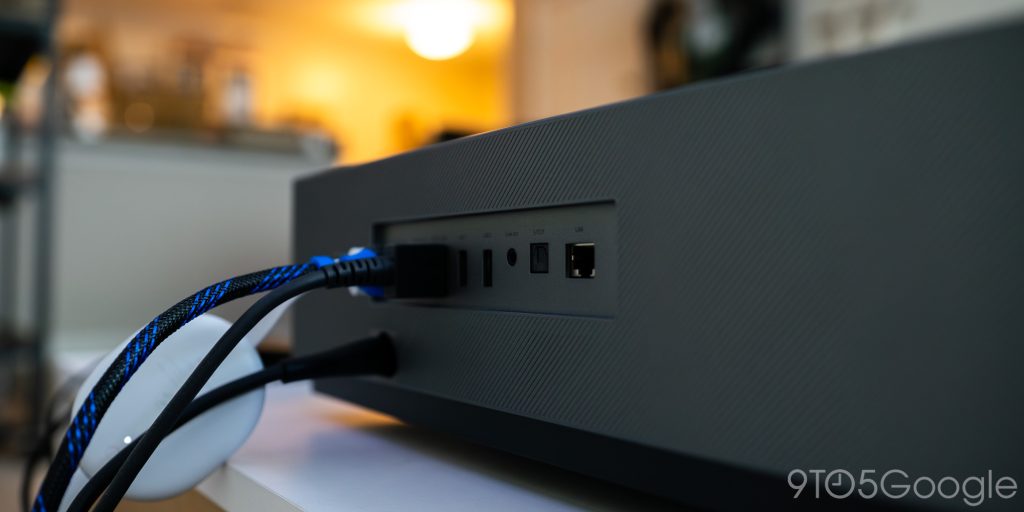 The bottom of the Theater holds several adjustable feet for really dialing in your picture. As for connectivity, we found that the Theater housed exactly what we needed with 3 HDMI ports – one of which is eARC compatible for various sound options. Besides HDMI, there are also two USB ports and a physical LAN connection for minimal latency.