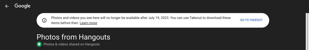 Following Google’s suggestion and getting a copy of these images won’t hurt, but — as best as I can tell — these images should be accessible in Google Chat and remain so even after next month. If anything, it’s a good trip down memory lane of the time period you heavily used Google for consumer messaging.