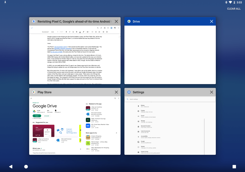 I was able to set up this tablet, stuck on a version of Android that’s several years old at this point, and still use Google Workspace apps, the latest version of the Play Store, and up-to-date apps in many cases. There were a lot of things that didn’t work, but this tablet is still surprisingly capable in 2023. Of course, that’s not a high bar, and one that Apple far clears. The company’s 2015 iPad Pros just now lost support for new iOS versions, though Google will likely still offer basic support for apps and such on the Pixel C’s Android Oreo for a few more years.