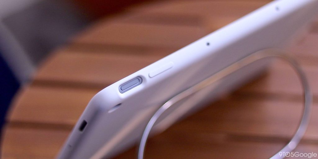 There’s a reliable fingerprint sensor (up to five digits can be saved per user) in the power button at the top-right corner. Given the placement and angle, your index and maybe middle finger are the only ones that can comfortably reach it every time. Regardless of whether the display is on/off, you can just lay your finger (instead of clicking) on the reader to unlock the tablet. That’s good because this sensor-button combo is a bit repressed and basically flat with the edge of the Pixel Tablet. This is fine for a fingerprint reader, but it somewhat hides the power key, with the already minimal camera bump in the corner being more prominent/distinct when you’re blindly trying to unlock/lock.