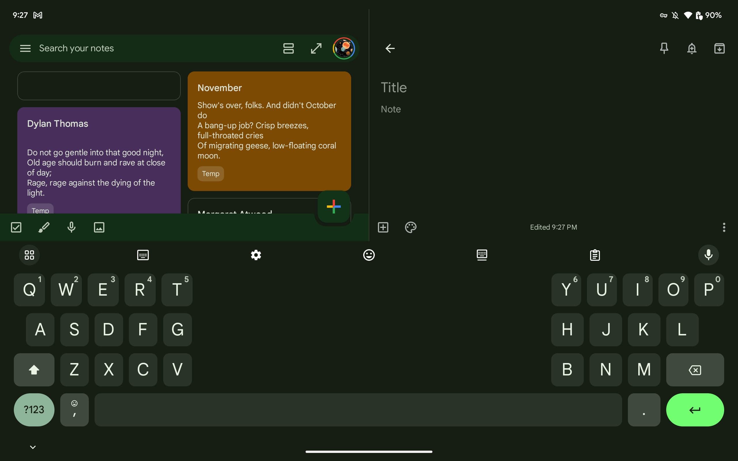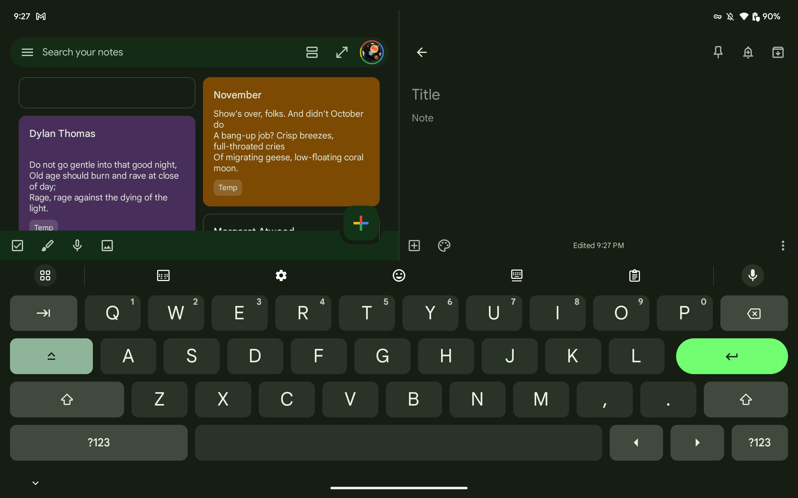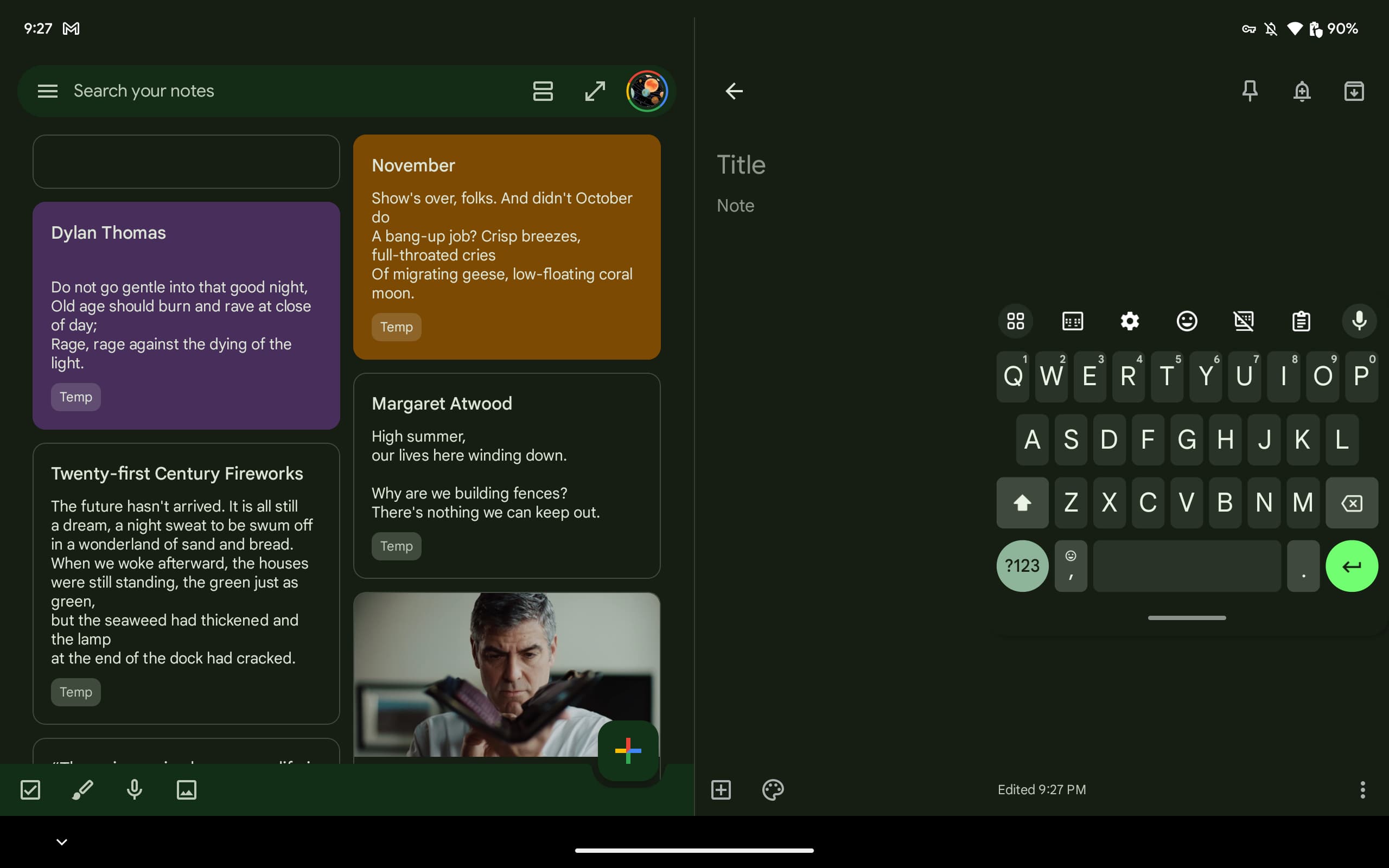 - Google Keep has a really good dual-column view in which you get to see all your notes on the left and open one on the right.