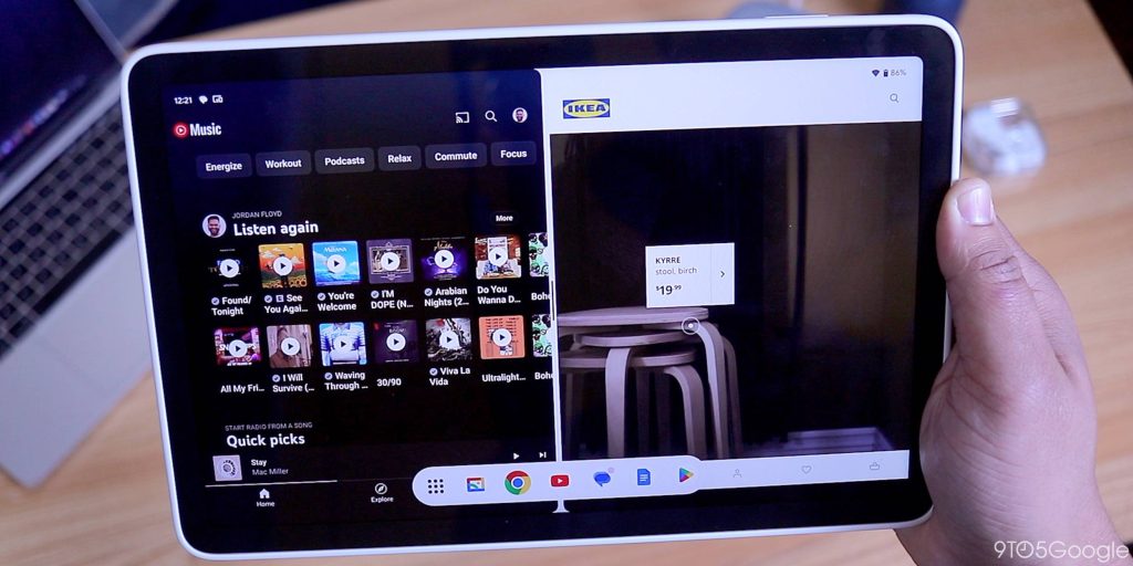 Swipe up from the bottom of the Pixel Tablet when you’re in an app to bring up a Taskbar and then drag an icon from it to open in split-screen. This tray is not permanent, with Google previously testing a bar that would stay docked at the bottom of the screen. Having used that design on the Galaxy Tab S8, I can see why Google changed direction (i.e., it can be a waste of space), but being static had its benefits, especially if you’re doing heavy multitasking and frequently switching between apps to accomplish a task.