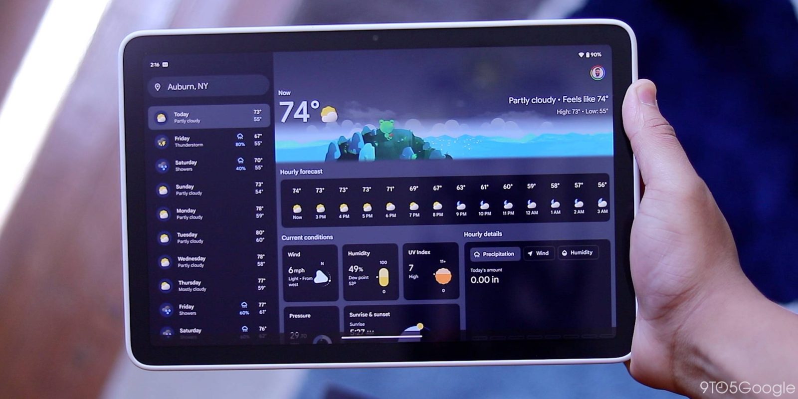 The launch of the Pixel Tablet and Fold also brings a Material You redesign of Google Weather. This revamp, which will later come to other devices, features “Google Nowcast” for more accurate rain, hail, and snow predictions.