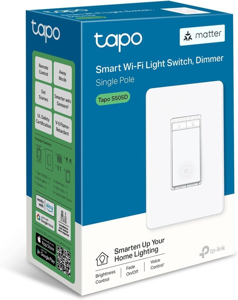 The TP-Link Tapo S505 and S505D are Matter-enabled light switches that you can install into the wall to control traditional lighting fixtures. The standard S505, which costs $25, has support for on/off, while the S505D, $28, supports a dimmer too.