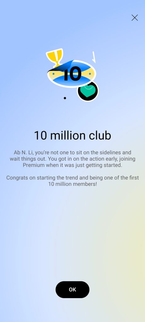 • 10 million club: “Congrats on starting the trend and being one of the first 10 million members!”