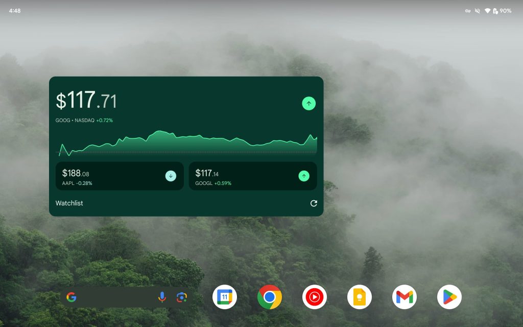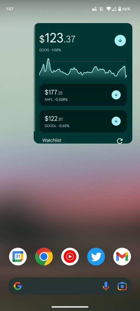 Somewhat surprisingly, the Google Search app on Android now offers a “Finance Watchlist” stocks widget.