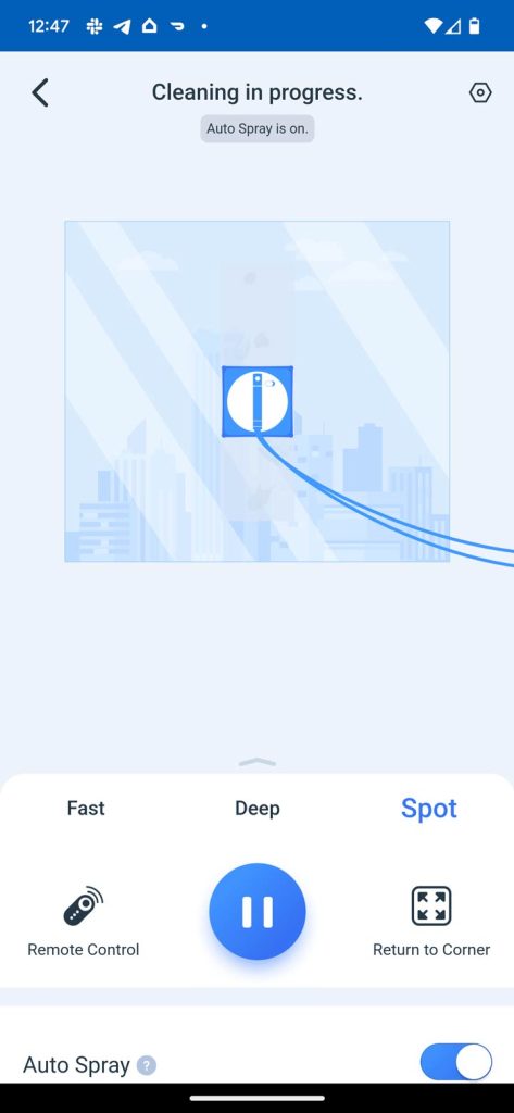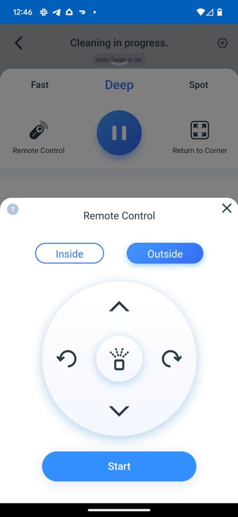 One more lacking feature is Google Home integration. It would be nice to see pause/start commands available via Google Assistant after placing it on a window, but that functionality just isn’t there. Otherwise, the Ecovacs app has the same user-friendly experience available once the W1 Pro is powered on and placed on the wall. You can even use a remote control function to manually drive the bot and spray certain spots.