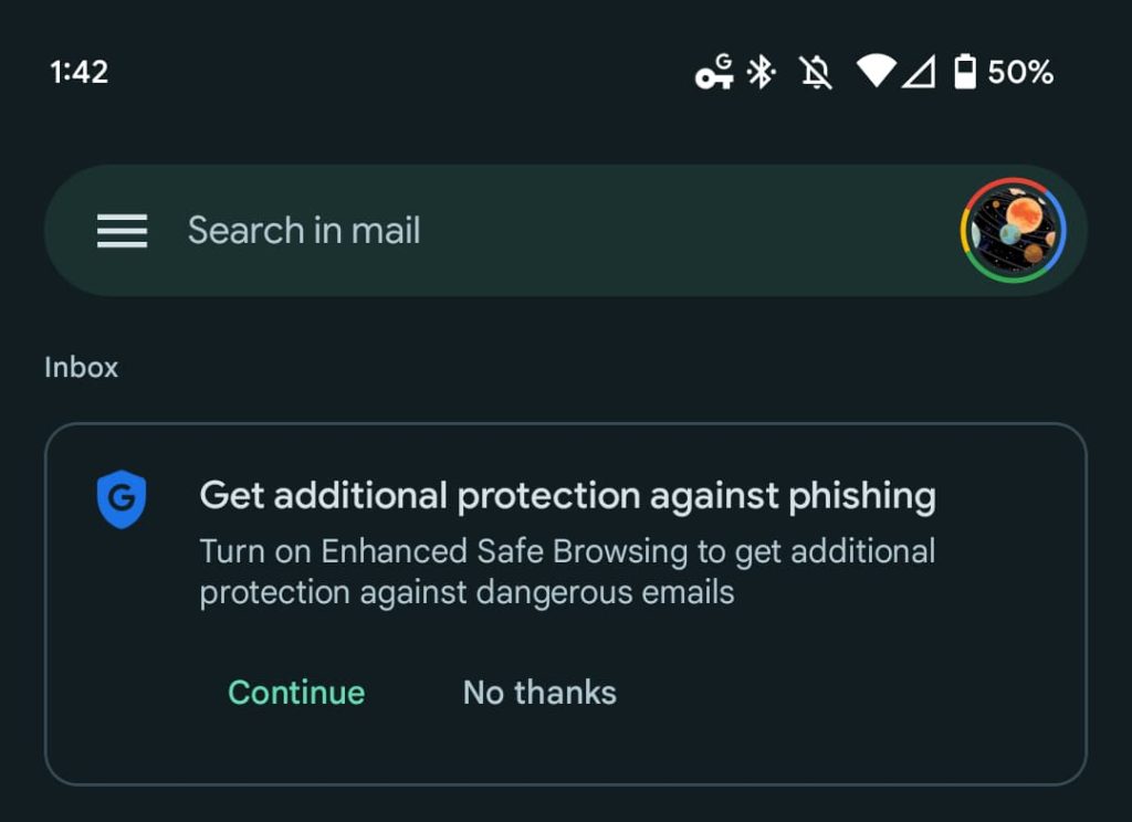 Over the past few days, Google has been prominently promoting Enhanced Safe Browsing in the Gmail apps.