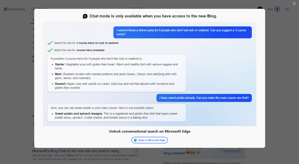 As spotted by Windows Central, a new pop-up on Windows 11 detects when you are using the Google Chrome browser and will appear with a message about Bing AI.