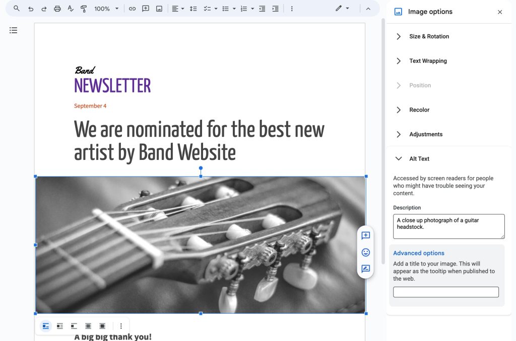 Elsewhere, Google is making it easier to adding alt text to images in Docs, Sheets, Slides, and Drawings. Instead of having to right-click a picture > Alt text, that field will now appear in the Image options sidebar.