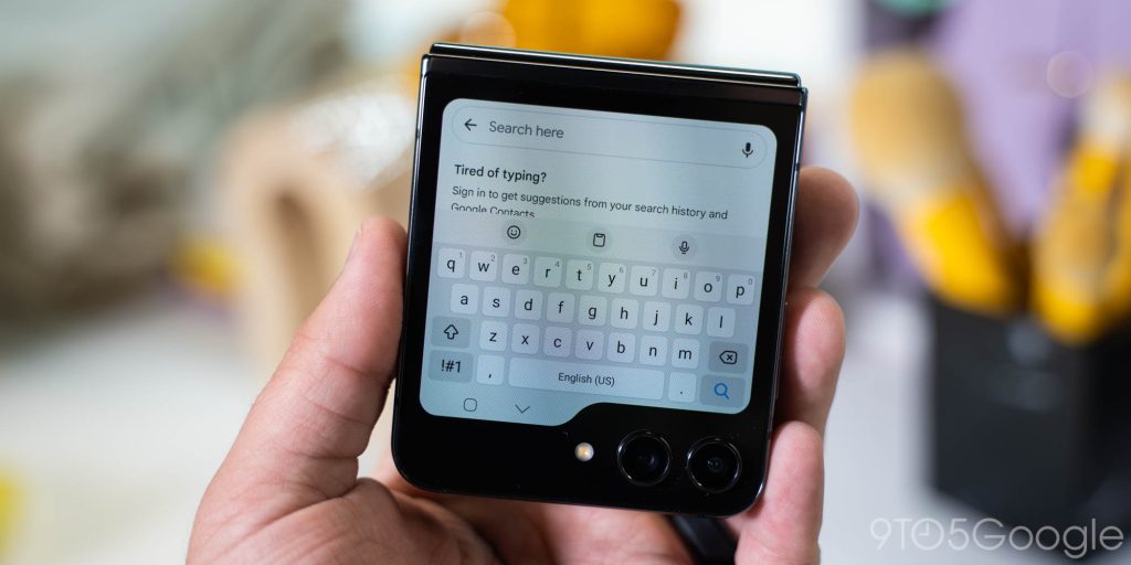 The full keyboard on Galaxy Z Flip 5 cover display is currently locked to the official Samsung Keyboard. You can’t use Gboard, SwiftKey, or anything else on the outer display. However, this can work independently of the inner display. If you’re using Gboard on the inside, for instance, Samsung Keyboard will still apply on the outside.