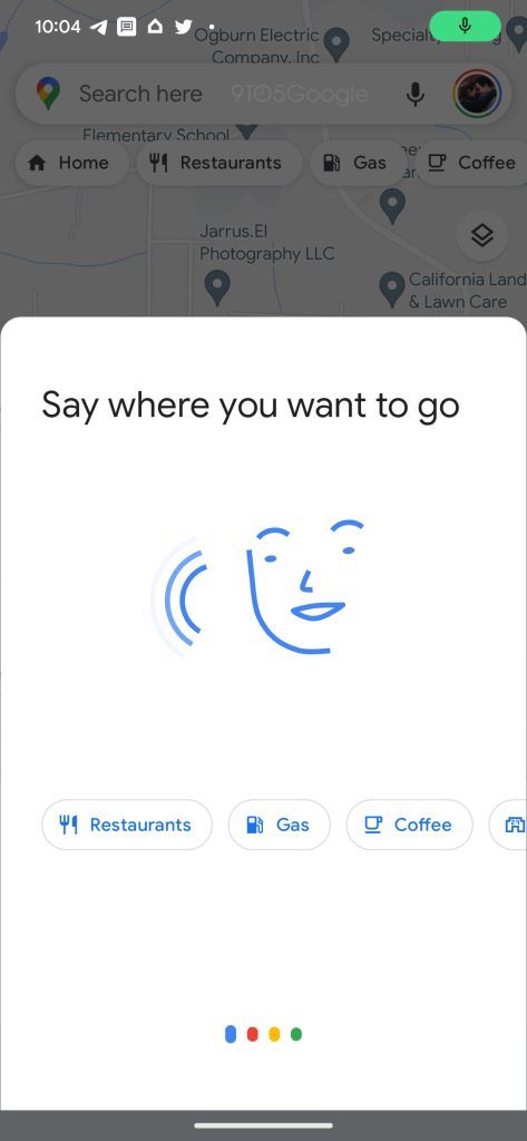 The new Google Maps voice input is powered by Google Assistant. When you first trigger it, a new interface pops up saying that there are “faster ways to search on Maps.”
