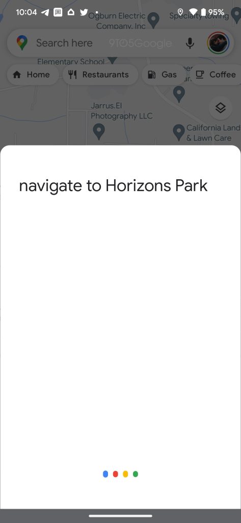 The new Google Maps voice input is powered by Google Assistant. When you first trigger it, a new interface pops up saying that there are “faster ways to search on Maps.”