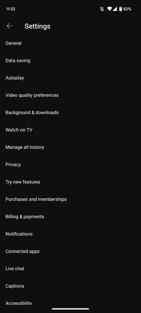 As of the late last year or the start of 2023, the main Settings list in YouTube for Android and iOS has been split into “Manage all history” and “Privacy.” The latter is home to just Blocked contacts and YouTube Terms of Service.