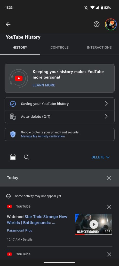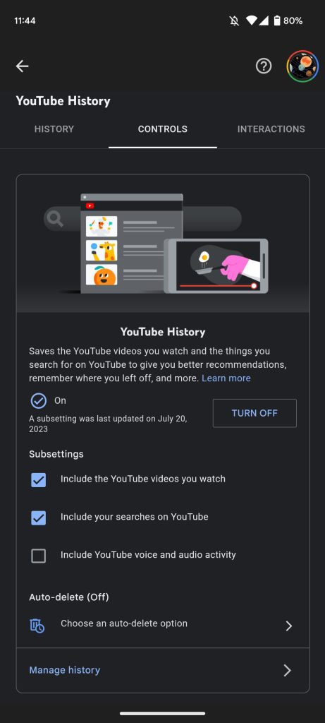 It technically loads inline with a mobile-friendly UI, but it’s not really a native experience. To actually pause YouTube search and/or watch history, you have to first visit the second “Controls” tab at the top and uncheck two Subsettings: