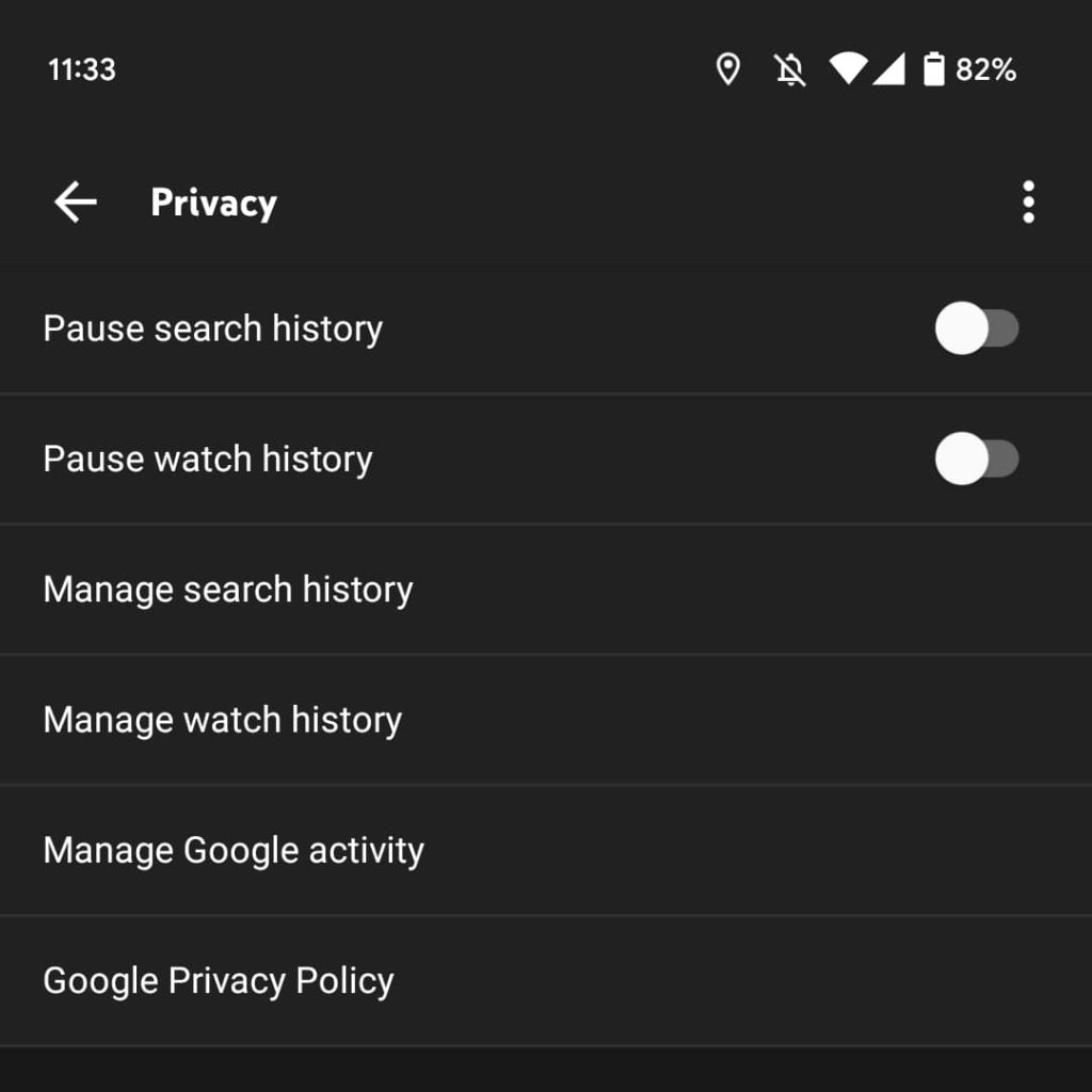 Previously, “Pause search history” and “Pause watch history” were simple on/off toggles in the Settings > “History & privacy” menu.