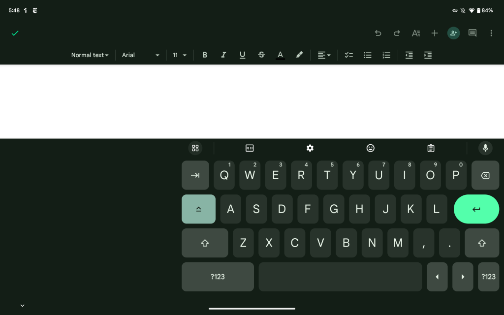 If you’re not taking up all the available space, you can move the keyboard. If you drag it up, you’ll see empty space beneath the last row/spacebar. Hit the checkmark when you’re done, or quickly reset it back to your original Keyboard height.