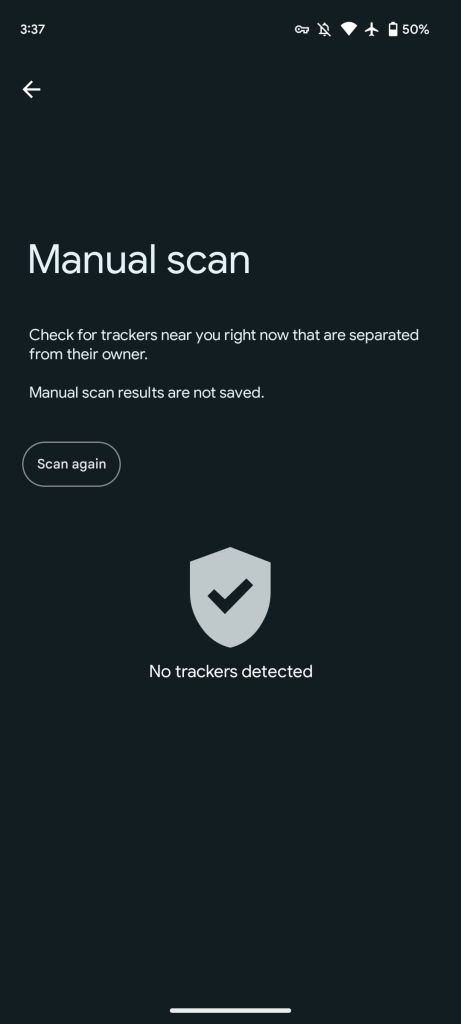 You will still be able to conduct a 10-second “Manual scan” at any time, though those results aren’t saved. Notably, Google explains how “Trackers that appear in a manual scan are currently near you, but may not have been traveling with you.”