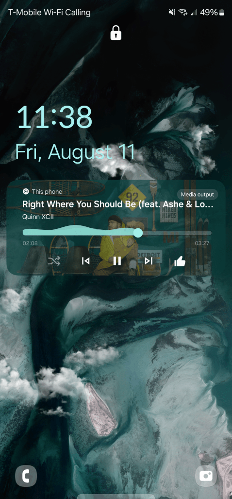 Samsung has also introduced its own take on the Android 14’s media player, as seen above, which has a wavy seek bar.