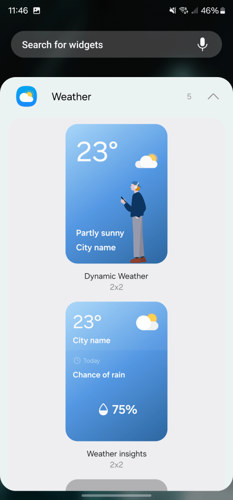 Another updated widget is for weather, with a new “Weather Insights” widget that can show chance of rain amongst other details.