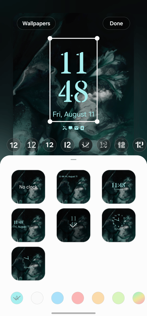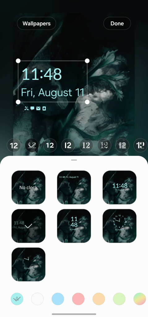 That does include the new lockscreen changes, with customizable clock faces, but Samsung also lets you move the clock around.