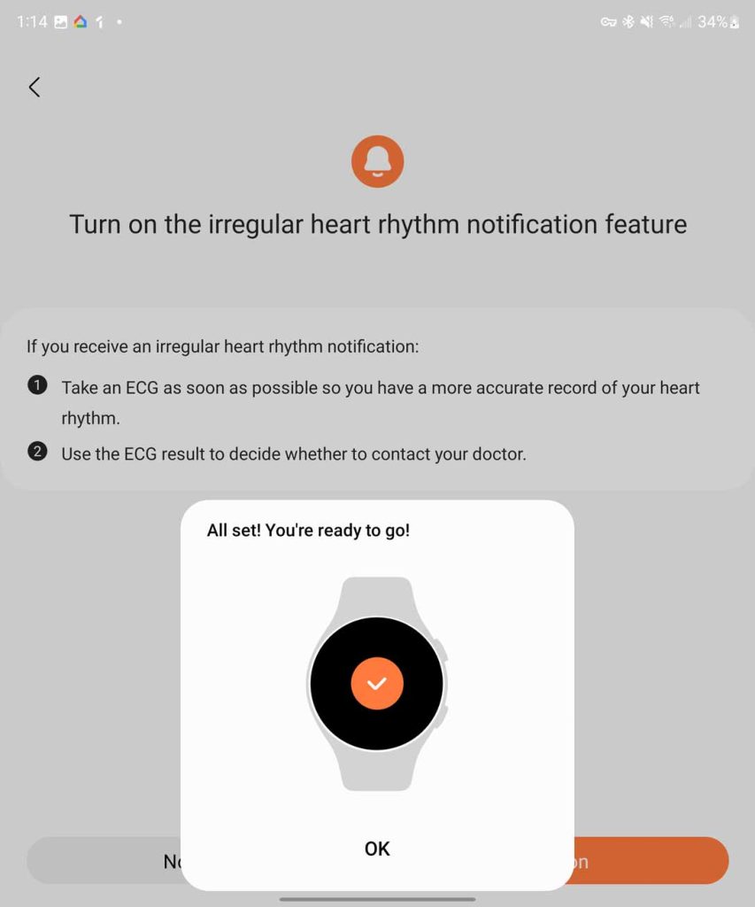 As long as you’re running a Samsung Galaxy phone paired with the Galaxy Watch, you should be able to enable irregular heart rhythm notifications.