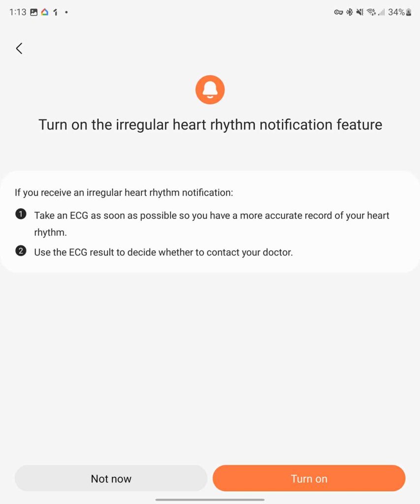 As long as you’re running a Samsung Galaxy phone paired with the Galaxy Watch, you should be able to enable irregular heart rhythm notifications.