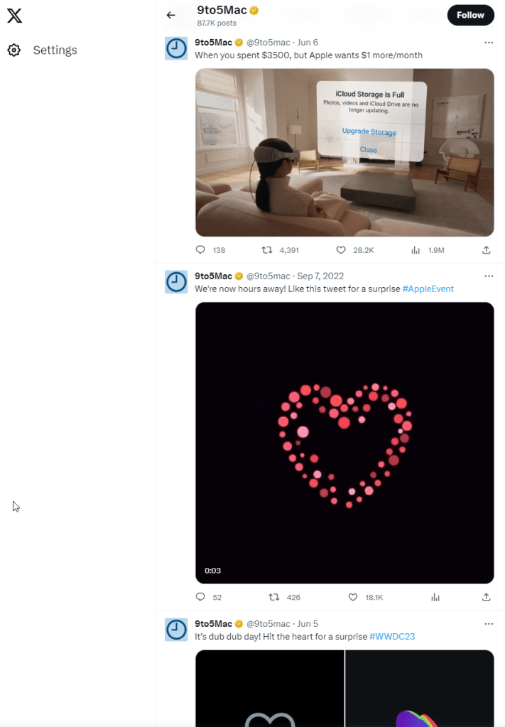 The inspiration for this change isn’t clear, and there’s no way for a logged-out user to see tweets in chronological order. That’s a bit frustrating, as this new sorting method can easily show posts at the top of a profile from years ago while burying more recent posts. The top three posts on NewGeekGuide’s account, for example, are from 2022, January 2023, and 2019. On 9to5Mac’s account, top posts are from June 2023, September 2022, and June 2023.