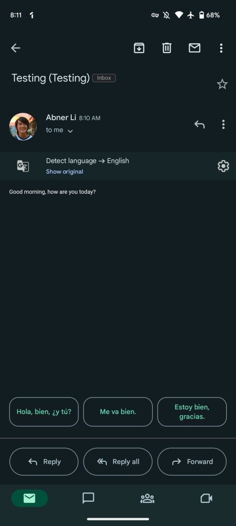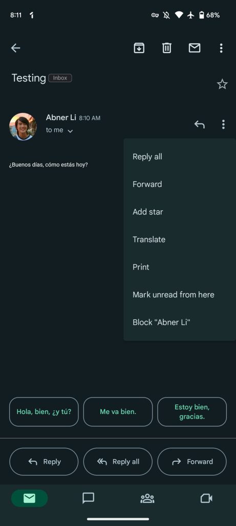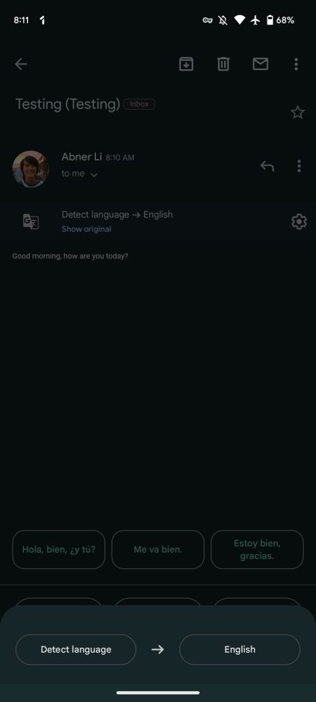 Update 8/21: Gmail’s translate feature is rolling out via a server-side update. We’re seeing it with version 2023.07.23.x. It’s not yet widely available, but one way to check is by tapping the second overflow menu in the message body for “Translate.”