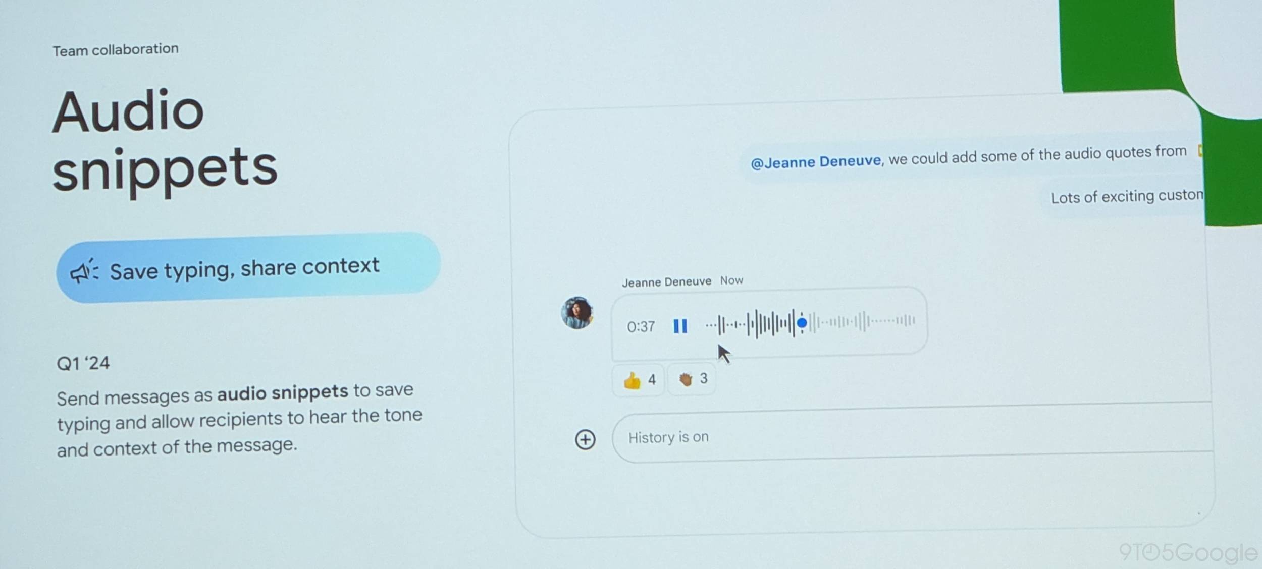 Google refers to voice messages in Chat as audio snippets that can “save typing and allow recipients to hear the tone and context of the message.” This is coming in the first quarter of 2024 to boost team collaboration, but hopefully it’s available for all 1:1 and group DMs.