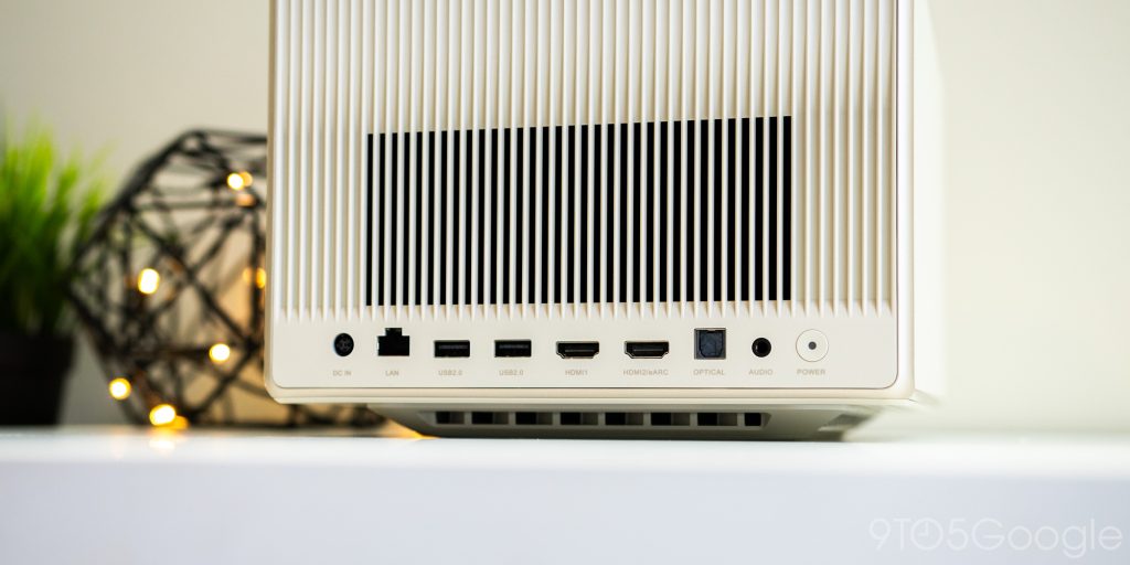 The Xgimi Horizon brings added versatility with its array of connection points. On the back, there are 2 HDMI ports – 1 is eARC – and 2 USB ports. If you want to have a private showing, there’s is a 3.5mm headphone or AUX jack, as well as an optical tie-in. In all honesty, I’ve been nothing but satisfied with the built-in Harman Kardon-branded speakers, but the option to expand it with eARC or optical is there.
