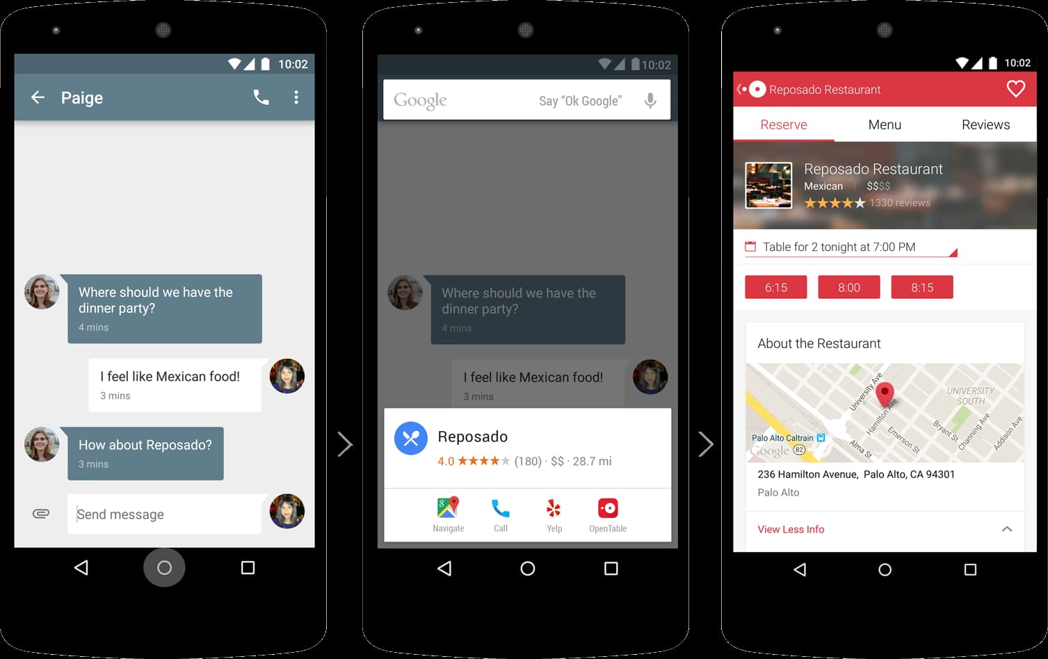 - “If you’re chatting with a friend about where to get dinner, Google can bring you quick info about the place your friend recommends. You’ll also see other apps on your phone, like OpenTable or Yelp, so you can easily make a reservation, read reviews or check out the menu.”