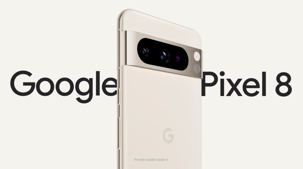 We then see a close-up of the Pixel 8 Pro in Porcelain/white and the camera bump, with a disclaimer noting “Pre-order available October 4,” which is par for the course on the Google Store.