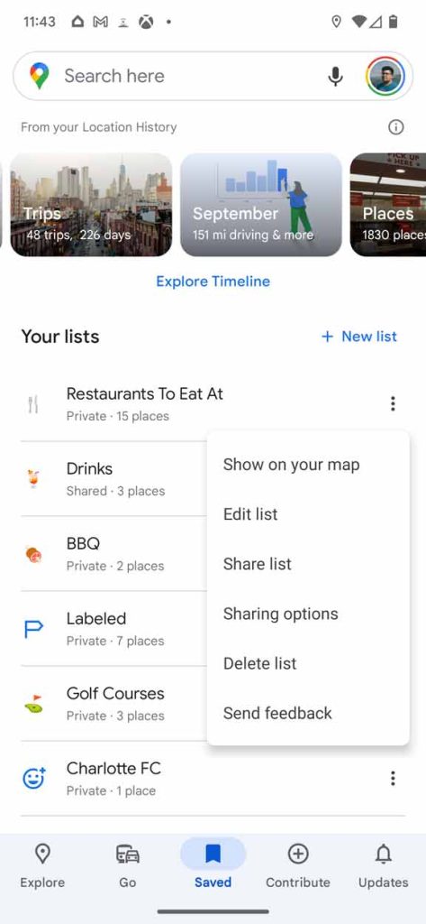 If you’re familiar with Saved Places in Google Maps, it’s one of the better features to come out of the navigation app in its existence. The Saved tab lets you organize and list your favorite spots by category, which is decided by you. Every list is custom and there doesn’t appear to be a limit to how many you can make.