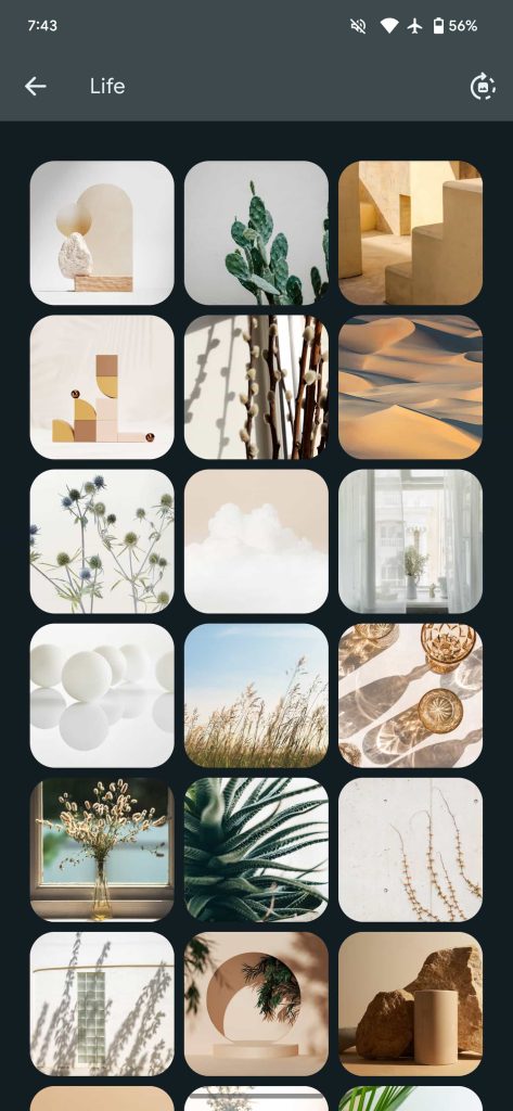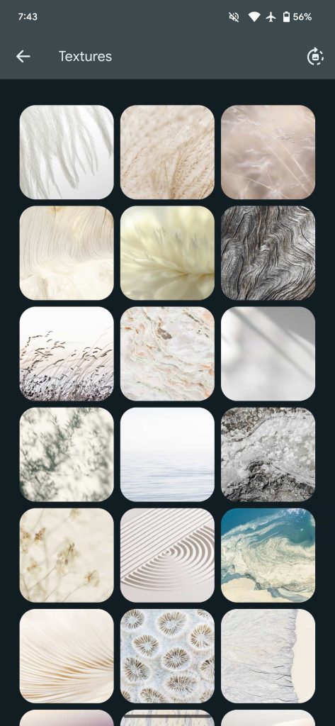 Cityscapes and Textures get 20 new backgrounds each, while there are 21 additions to Life. The two latter albums are going for a nature motif and are mostly light/wispy. Google has not changed the cover image for each collection, while the new wallpapers are not named or credited when you tap the info icon.