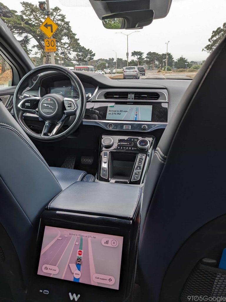 Compared to the human-driven equivalent, I had to walk 15 seconds to the Jaguar I-Pace that was picking me up rather than having it arrive right in front of me. Unlocking the doors involved tapping a button in the Android or iOS client, which was more or less like any other ride service’s companion app. The doors then pop out and you enter. Once you’re ready, there’s a “start” button on the touchscreen.