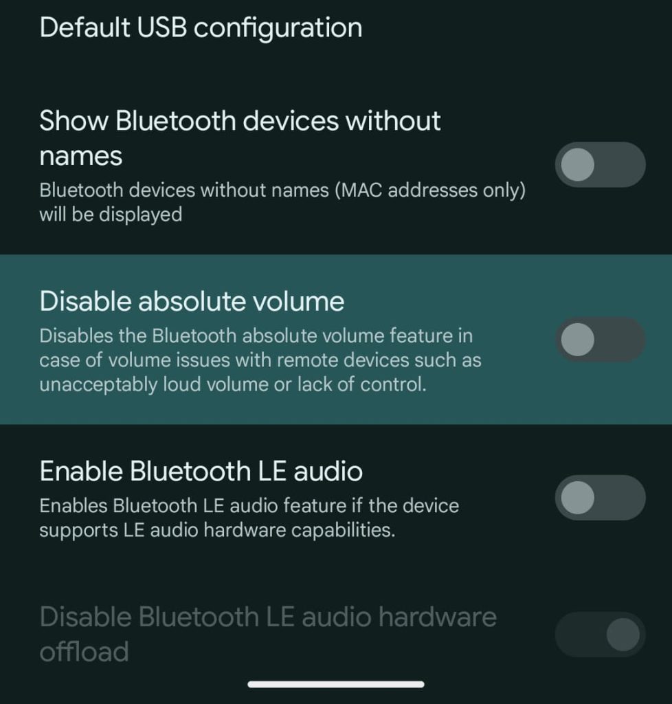 The instructions for boosting volume are split between Pixel and all other Android devices. On Google phones, it involves switching off “Disable absolute volume,” which is off by default on Android 13 and 14 devices we checked. Find it under the “Network” sub-menu, but you can just search for it: