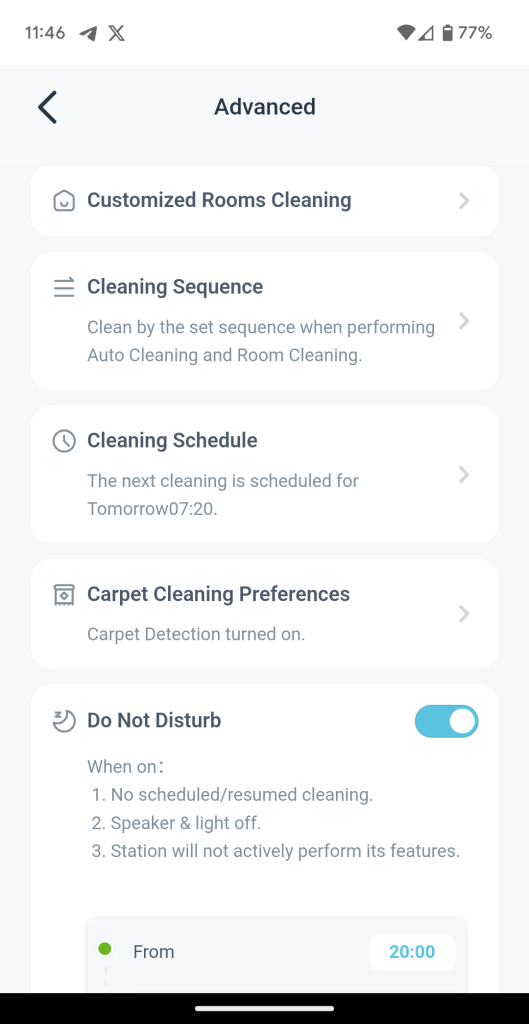 In the app controls are split between the robot and the station, with the former able to control the intensity of the mop and vacuum, set schedules, the order in which the robot cleans rooms in your home, and more, while the latter can let users manually clean or empty the robot and adjust the mop drying time and washing intervals – the robot will go back to the station every so often during a cleaning run to rinse the mop. I think many robot vacuum apps can be intimidating for users, but this one is reasonably simple and easy to use.